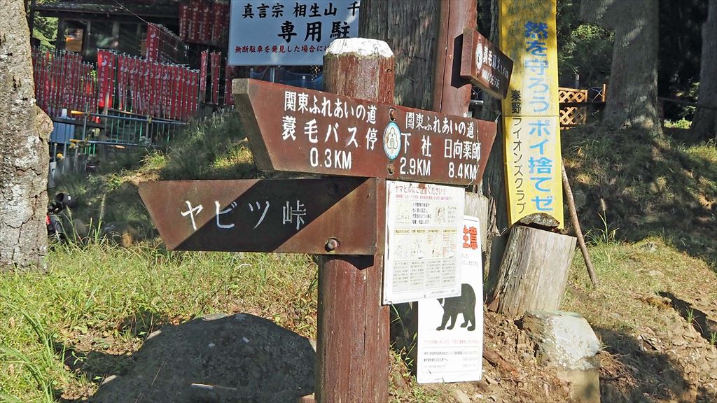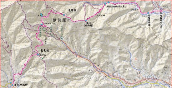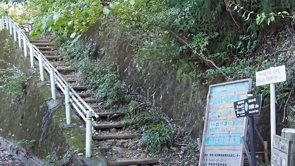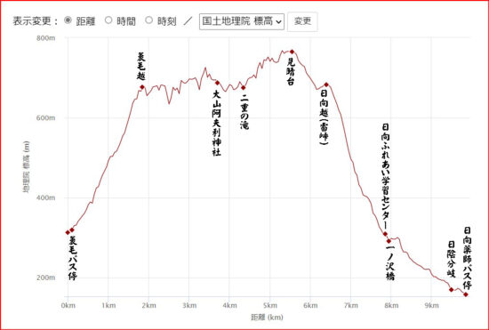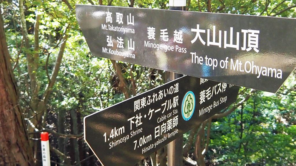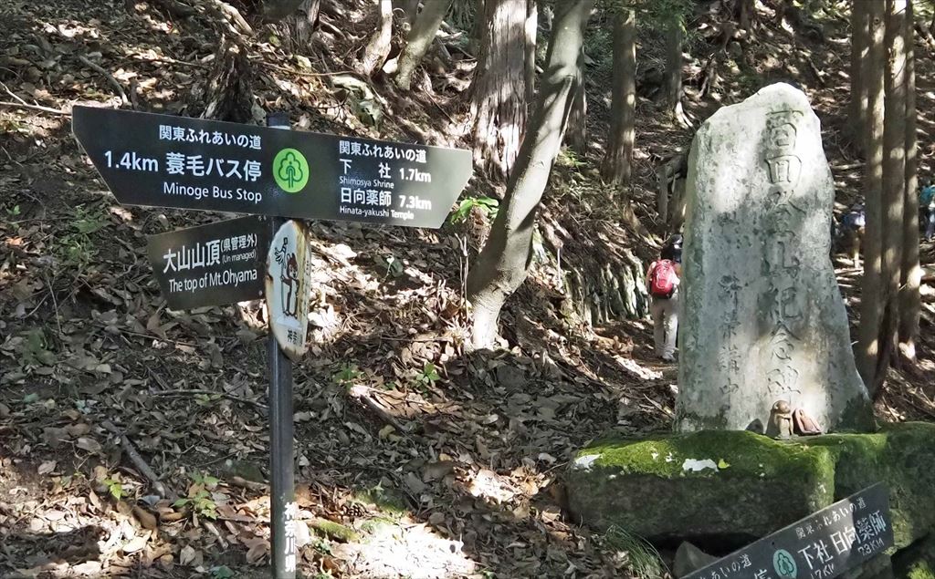 小田急線秦野駅=蓑毛バス停9:10→柏木林道分岐→蓑毛越10:18→10:50阿夫利神社下社11:10→11:40見晴台12:20(昼食)→雷峠12:40 →九十九曲り→日向ふれあい学習センター13:40→日向薬師バス停14:10=小田急線伊勢原駅