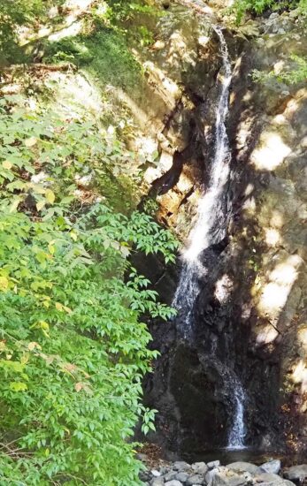 かつて一つだった岩が上下二段に別れ、後に上段から水が湧き出て、二段の岩を流れることから「二重滝」と呼ばれているそうです。「修験者」たちが、この滝に打たれて禊を行っていたといわれています。そのことから、別名「清めの滝」とも呼ばれ、現在も神域となっているそうです。