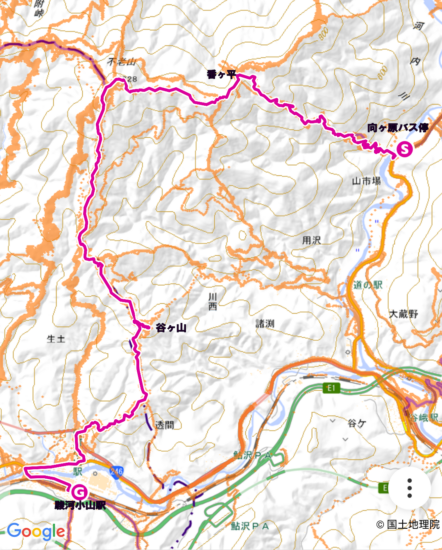 12:03不老山(昼食)12:35ー14:00谷ヶ山14:10ー15:25駿河小山駅