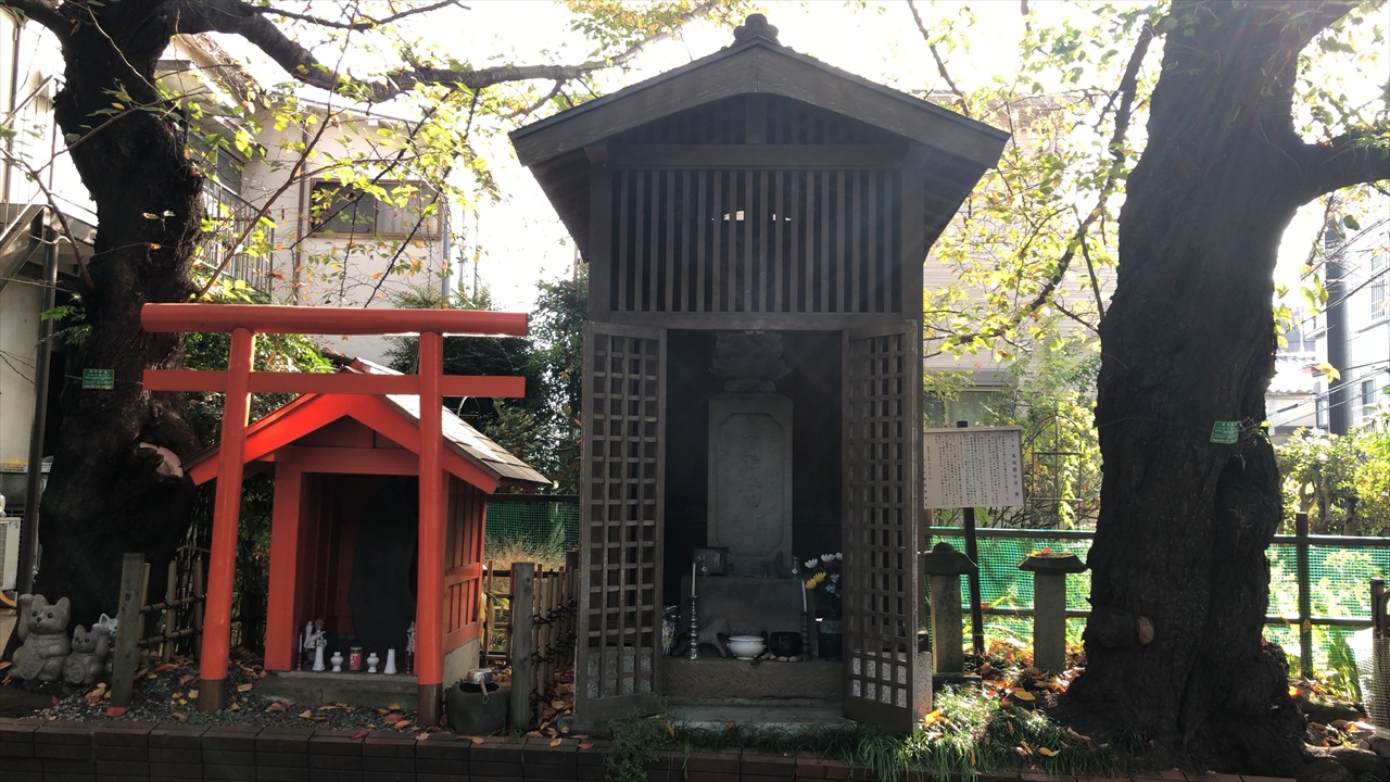 磯部家は1590年に豊臣秀吉に領地替えを命ぜられた徳川家康に随行して、三河の国から江戸に来まして、この地に住みつきました。ご先祖は代々、獣医(主に馬)をされていました。現在は「伯楽製鋲所」という会社を経営されていまして、この「馬頭観音」は会社の敷地内にあります。