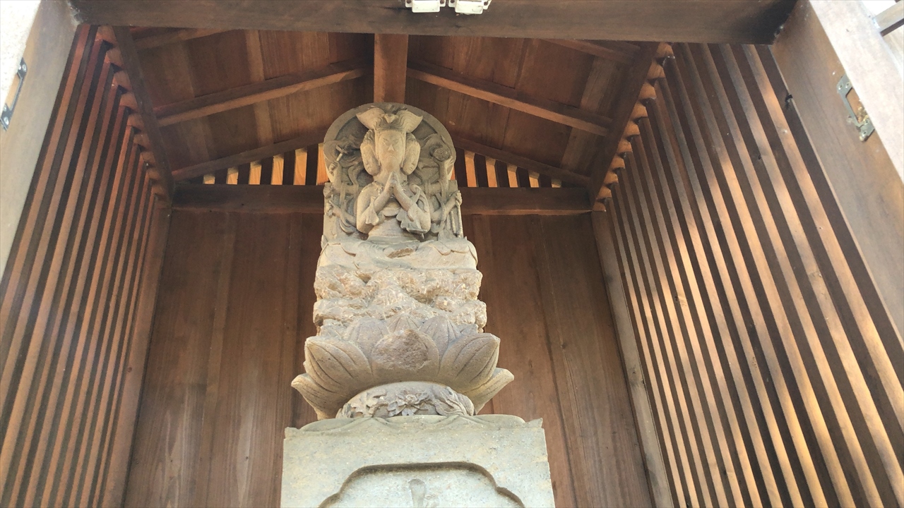磯部家の「馬頭観音」。右側の黒っぽい建物の中にあります。