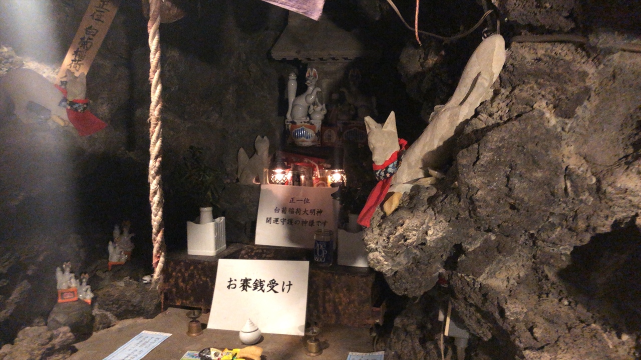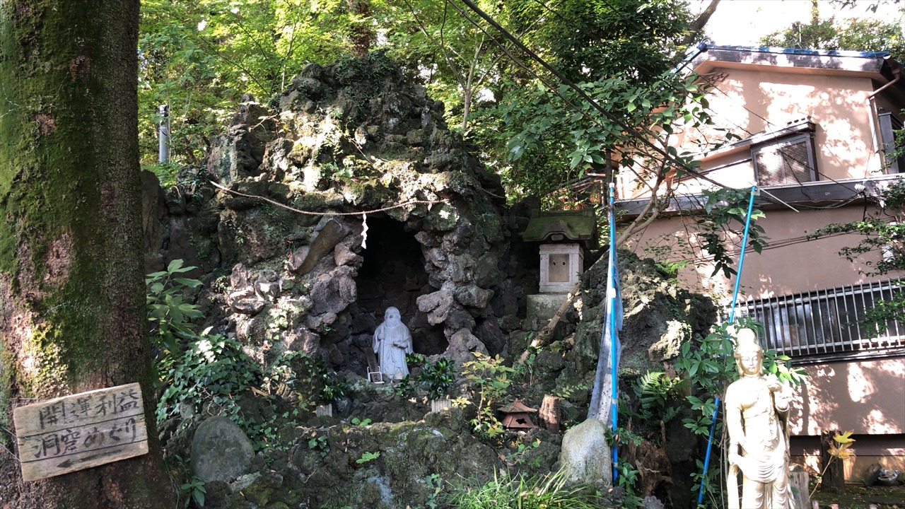 この「胎内洞窟」は富士山の溶岩を使用し、3年がかりで完成させた「開運の洞窟」です。長さは25m。