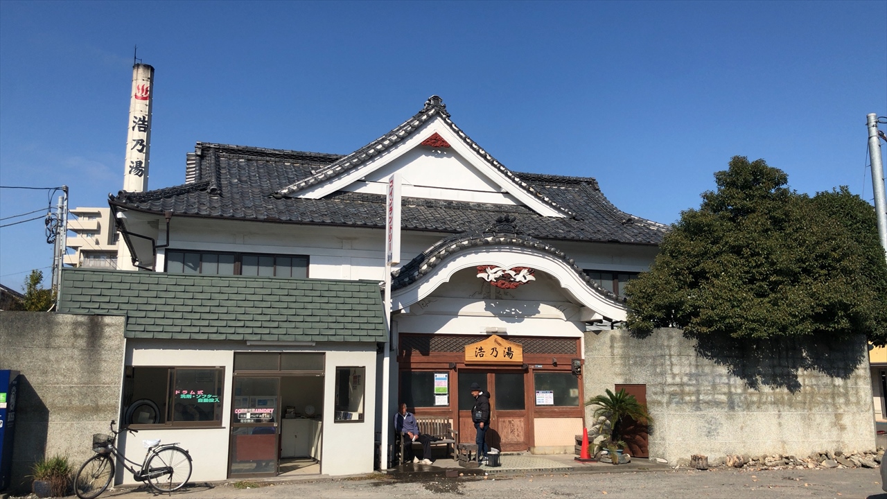 「浩乃湯」。和光市に残る最後の銭湯とのこと。正面に古い宮作りが残る貴重な銭湯。