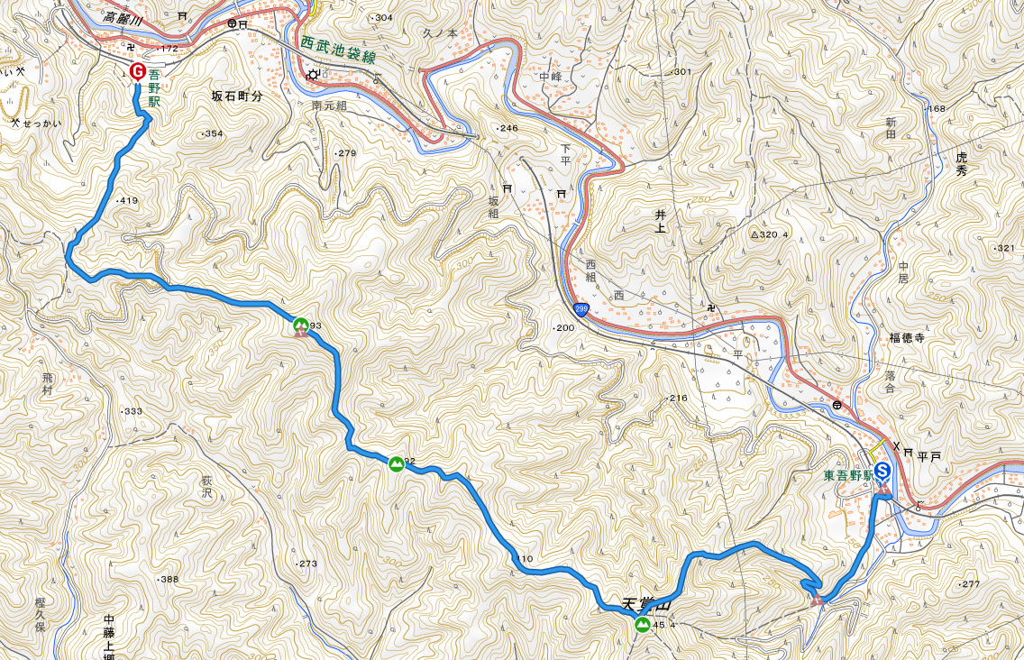 ▼コース :駅09:15→10:15天覚山→11:40大高山(昼食→12:00)→前坂12:30→吾野駅13:30(解散)