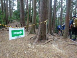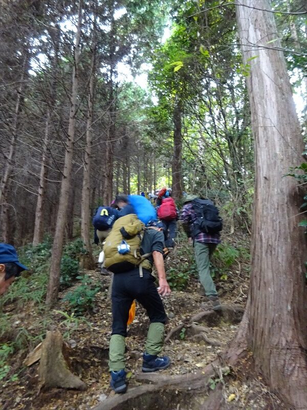 狭い登山道で休憩