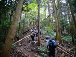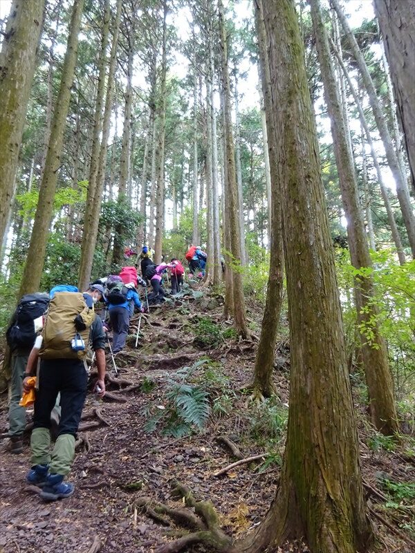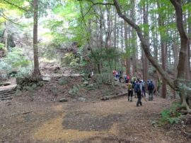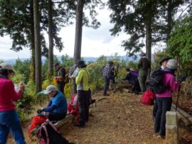 リーダーコメント:天気予報では雨を心配しましたが、下山まで一日もちました。天覚山の登りを急坂の