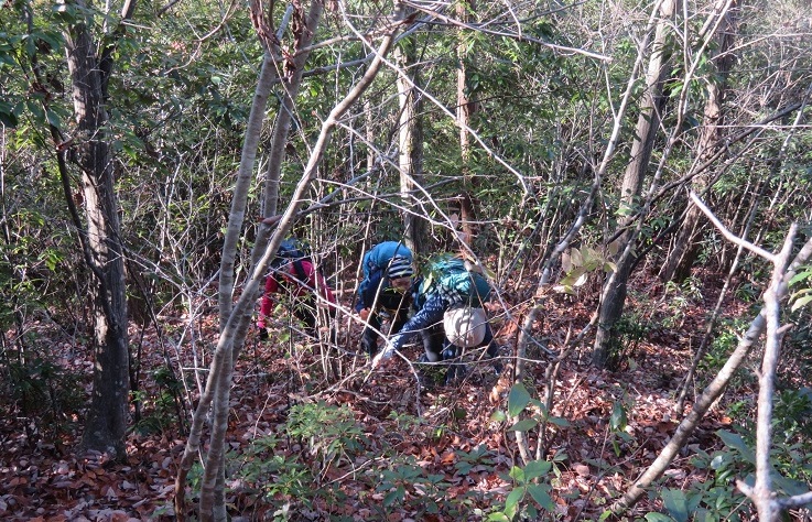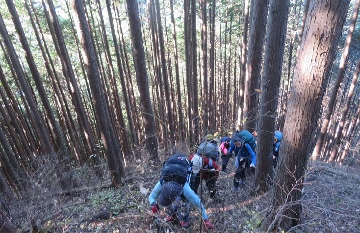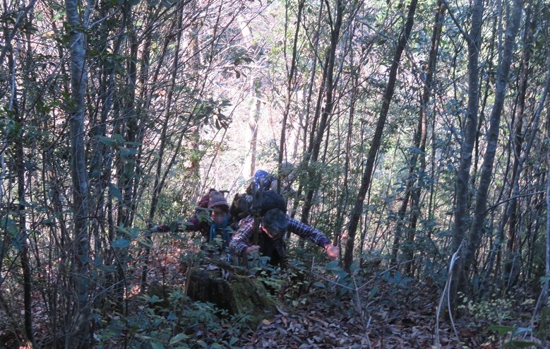 距離は短いのですがヤブの急登をみなさんがんばって登っていただきました