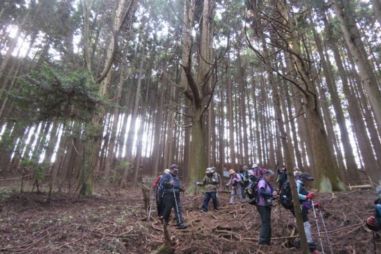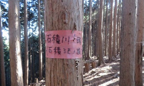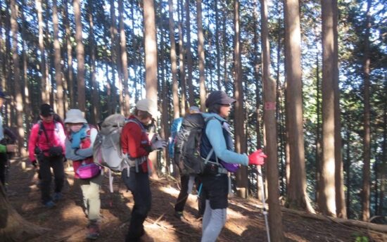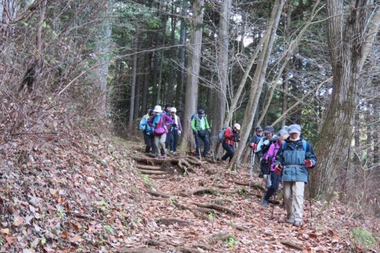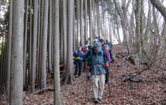 コース:古里駅 9:40集合 9:50歩行開始 → 登山口 10:20 → 愛宕山 11:00 → 石積沢ノ頭 昼食11:50-12:20 →丹三郎山 12:40 → 大塚山 13:50 → 嶺雲荘 14:30