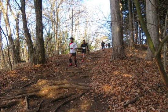 私たちは山岳ランナーたちを大塚山山頂で応援です