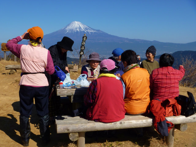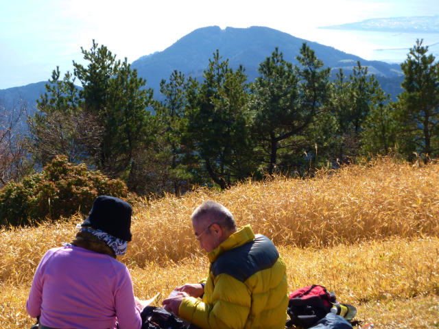 湯河原、泉から登られた女性二人でした。 ひとしきり眺め マイクロバスのある