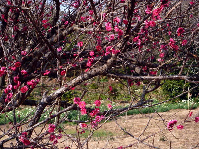 されています。今は万両が赤い実を付け、紅梅と水仙が沢山 咲いていました 。
