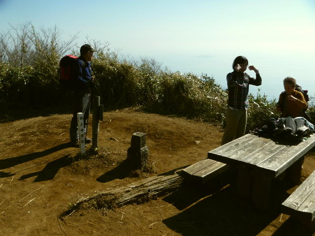 山頂に先客もありカメラを依頼され また私たちの全員写真も引き受けてくれた。
