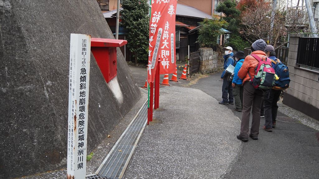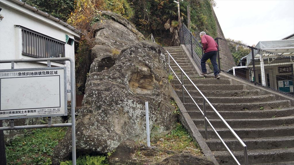 急傾斜地崩壊危険地域(追浜南町1丁目A)の標示杭がありました。