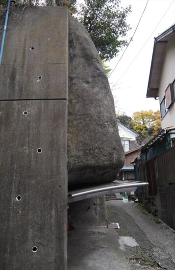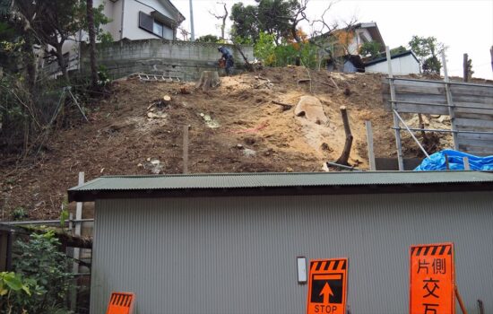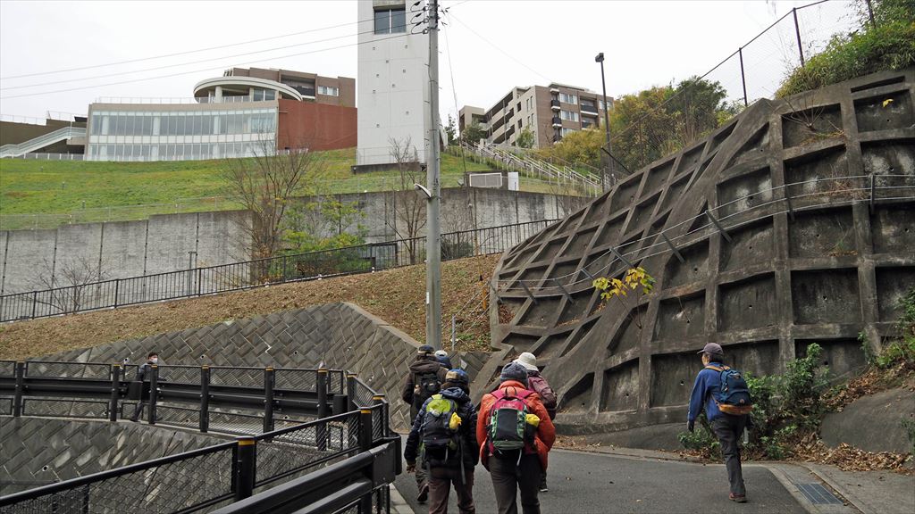 トンネルをぬけると急傾斜地に擁壁があり、マンション等が建っていました。