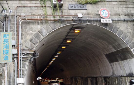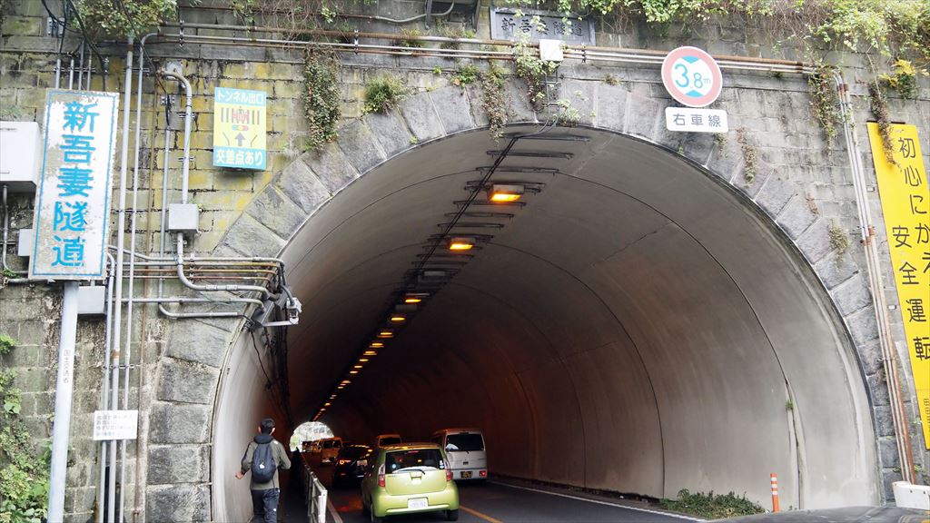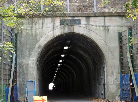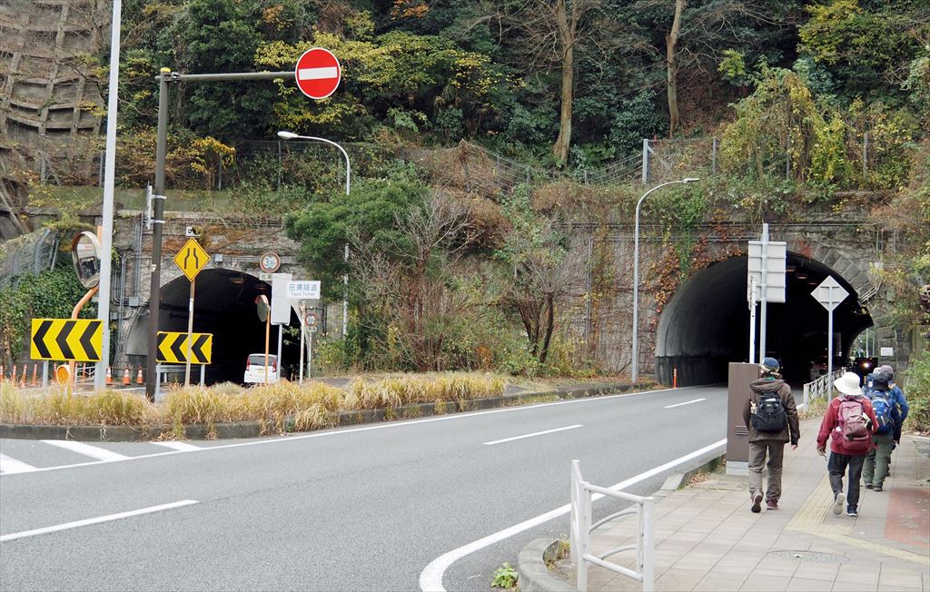右側は、新田浦隧道 竣工:昭和17(1942)年 全長 119m