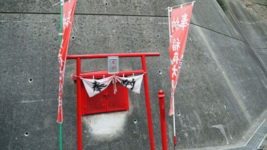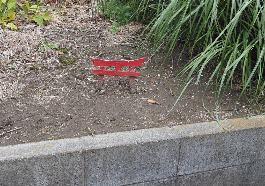 トンネルを抜けてすぐ、擁壁の中にお稲荷さんが収納されていました。