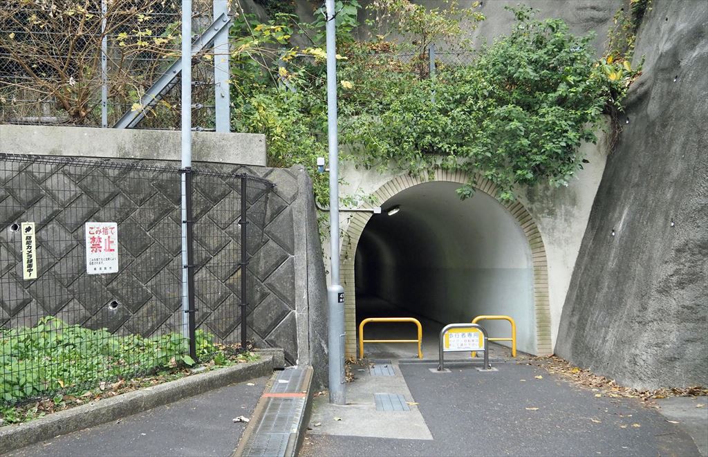 付近が軍事施設として買収され、かつ、立ち入り禁止による渡船中止で地元有志が負担した民間建設の市内最古の隧道。