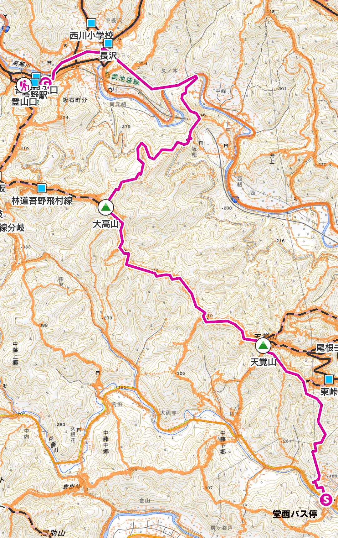 コース :飯能駅8:20-(バス)-8:44堂西バス停8:55ー仙谷山9:53ー10:37天覚山