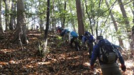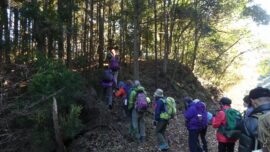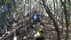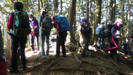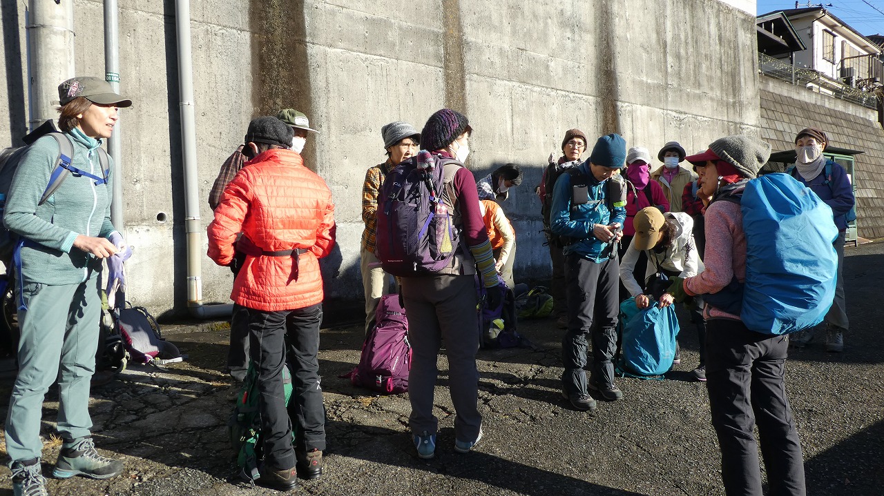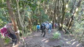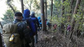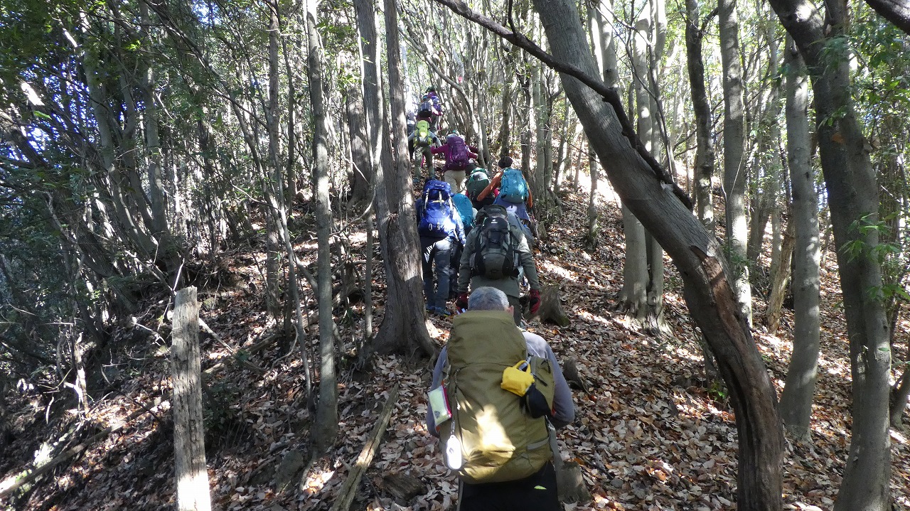 山川リーダー、参加リーダー、スタッフの皆様、お疲れ様でした。民家の脇からいきなりの急登で一気に山の中へ!!細い稜線に上がり昭文社地図にある稜線まで、立ち枯れの藪を踏み分け、グイグイとバリエーションンで上がりました。この時期だからこそ味わえる奥武蔵の冬枯れの稜線歩きを味わえました。辿り着いた大高山から未踏の急下降は、24名が新ルートを開拓しながら進み、不気味な鎌倉峠から藪を掻き分け辿り着いた鷹ノ巣山、、、低山とはいえ達成感のあるダイナミックな山行でした。ありがとうございました。