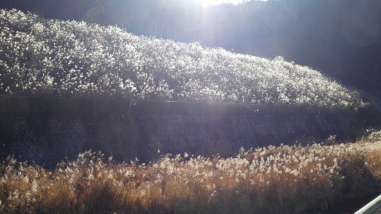 高麗川両岸の光輝く一面のススキ(吾野トンネル入口付近)