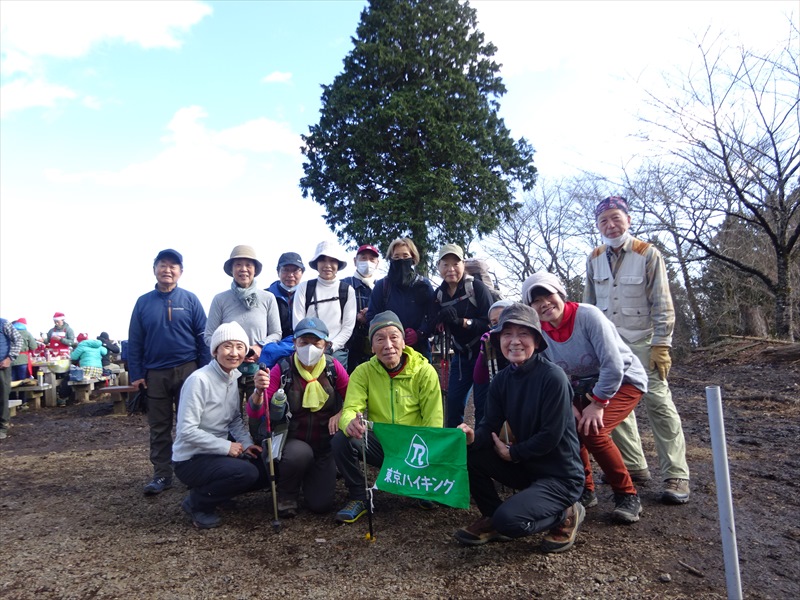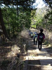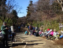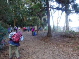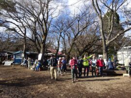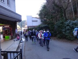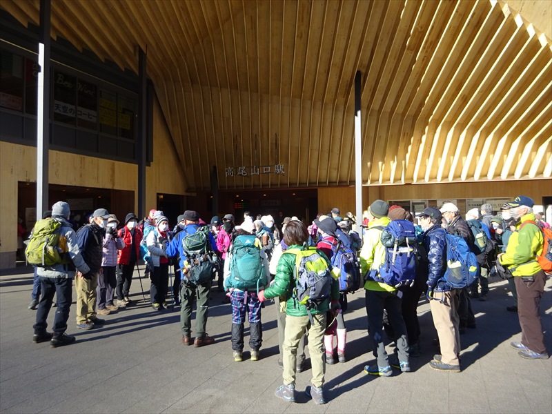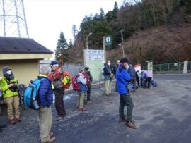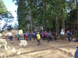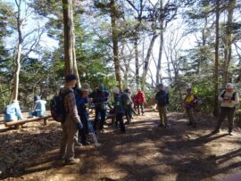 リーダーコメント:今年最後の山行を高尾山稜で終了しました。週末とクリスマスイブが重なり大勢のハイカーが来ていてもみじ台では足場のない程、昼食を食べている人、富士山頂に落ちるダイヤモンド富士の撮影の為多数のカメラマンが三脚を立て場所取りをしていました。城山に向かうコースには所々にシモバシラが見られ城山で休憩後、小仏峠から下山しバス停で解散しました。参加されたリーダー、協力者、会員の皆様には大変お世話になりました。良いお年をお迎え下さい。