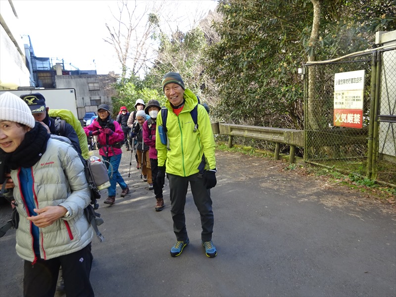 駅前にて、リーダー挨拶とコース説明、この後三班に分け出発