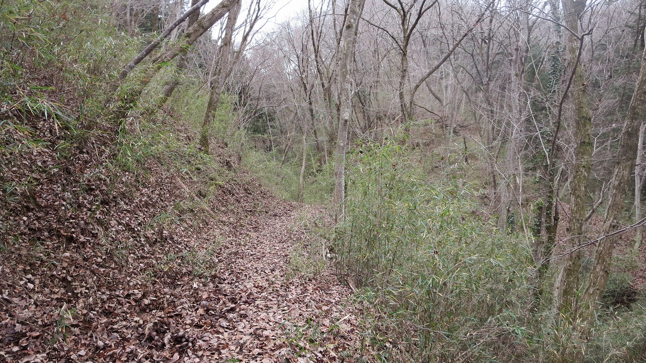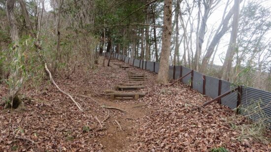 尾根に上る。奥の道は「敷島金剛山」へ。我々は反対側へ。