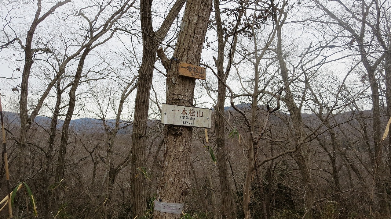 「一本松山」。少し戻り舗装道路に下り「名倉金剛山」に向かう。