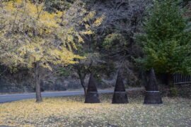 「私有地」へ下山! 舗装道路の芸術のみちの「野外環境芸術の作品」を見ながら藤野駅へ向かう。