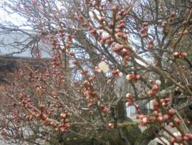 その後、境内を一周して公園を散策しましたが早咲きの梅はまだ硬いつぼみでした。