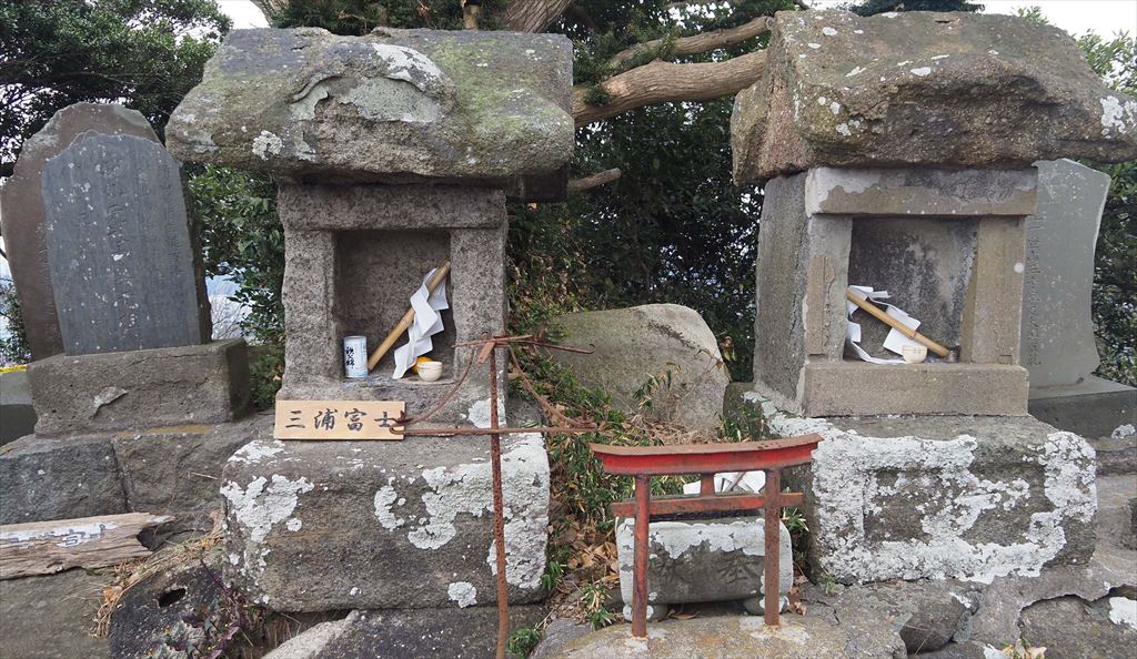 標高183mの三浦富士山頂にある2つの石祠は浅間神社(津久井浜駅前)の奥宮です。