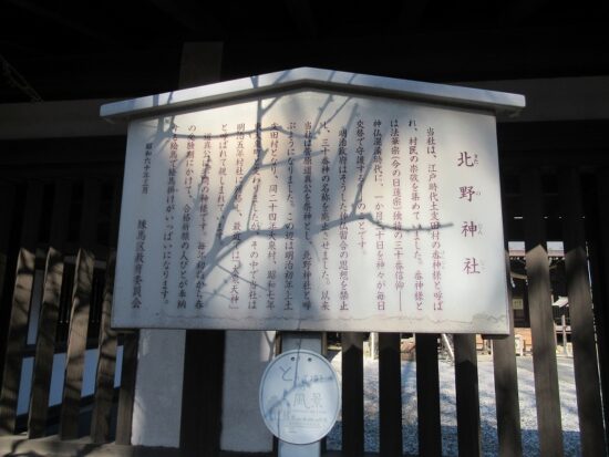 10:30 北野神社 元は「番神さま」と呼ばれ親しまれていました。番神さまとは日本国中にまつる30の神々が、1ヶ月30日の間毎日順番に国家と人々を守るという信仰です。