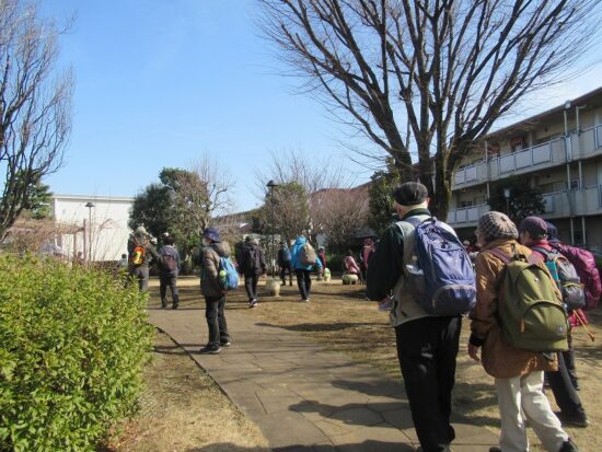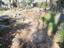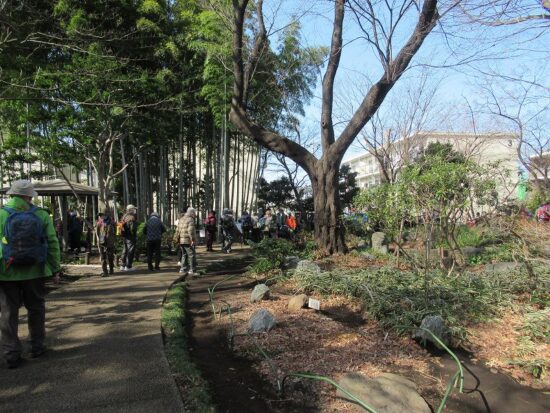 コース :西武線大泉学園駅 10:10集合 歩行開始10:20→北野神社10:30→妙福寺11:00→石庭の森緑地11:30→大泉井頭公園12:00(昼食)12:40→井頭の森緑地→東大泉木もれ陽公園13:15→牧野記念庭園13:30(見学)13:50解散→大泉学園駅