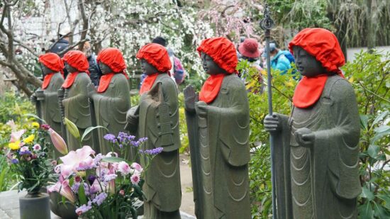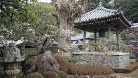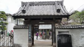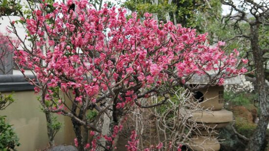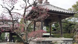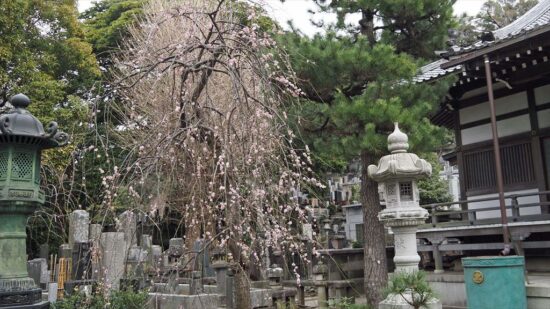 龍の口刑場跡地と伝えられていて刑場にて処刑になった人々を弔っています。もとは真言宗の寺でしたが、日豪上人により日蓮宗に改宗しました。境内の「元使塚」は建治元年(1275)に斬首となった、蒙古からの使者、杜世忠以下5人の供養塔です。2~3月にかけて、たくさんの枝垂れ梅が見事に咲き誇ります。