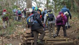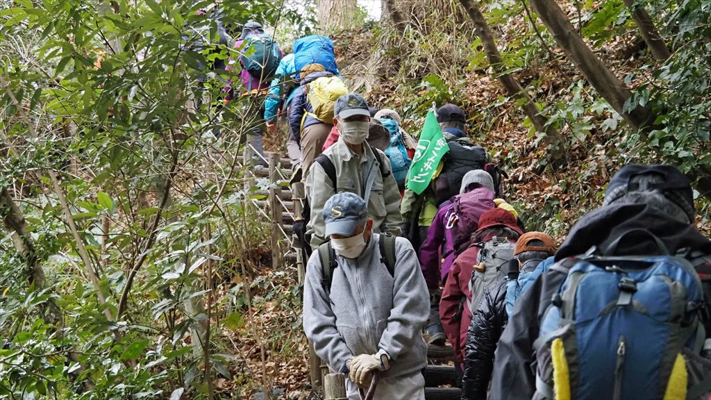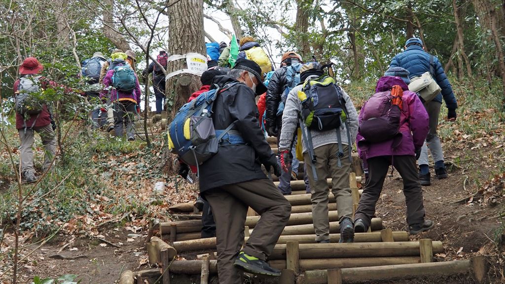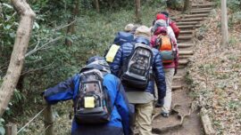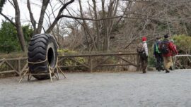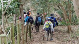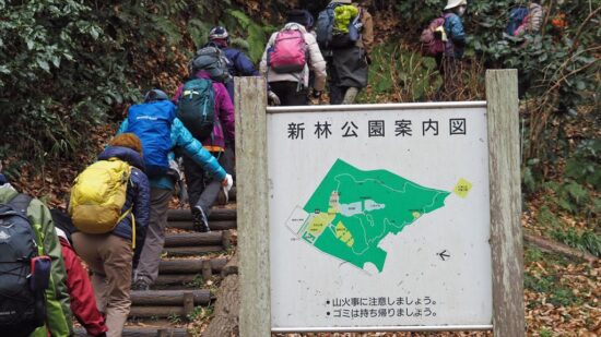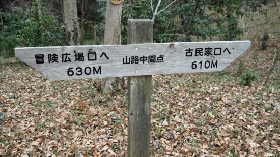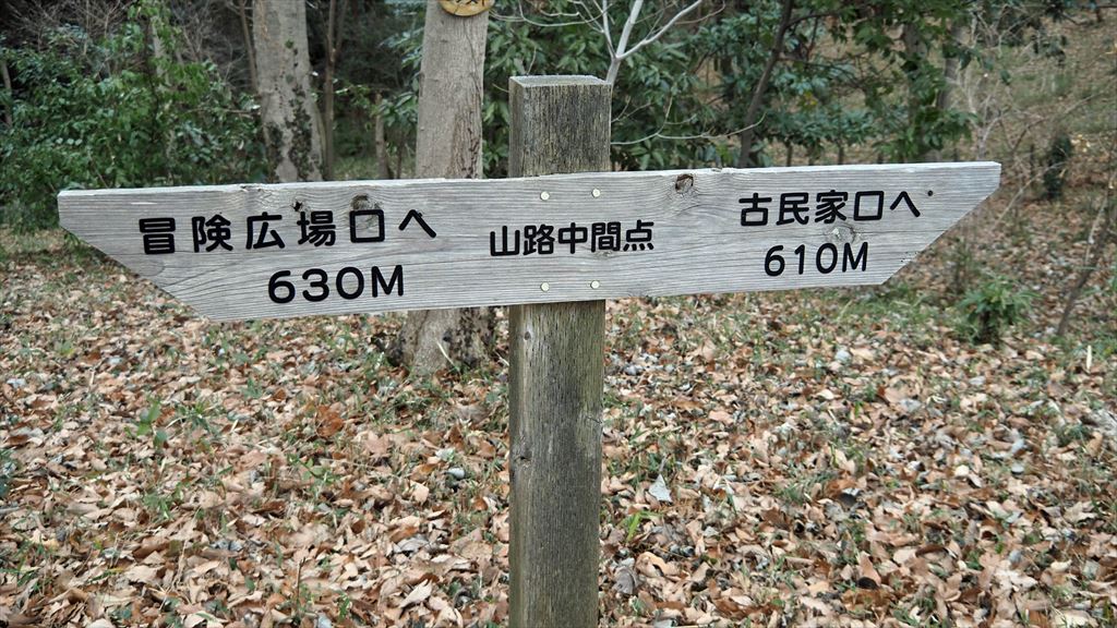 古民家見学後は、公園内のハイキングコース(山道)を周回。山道登リ口