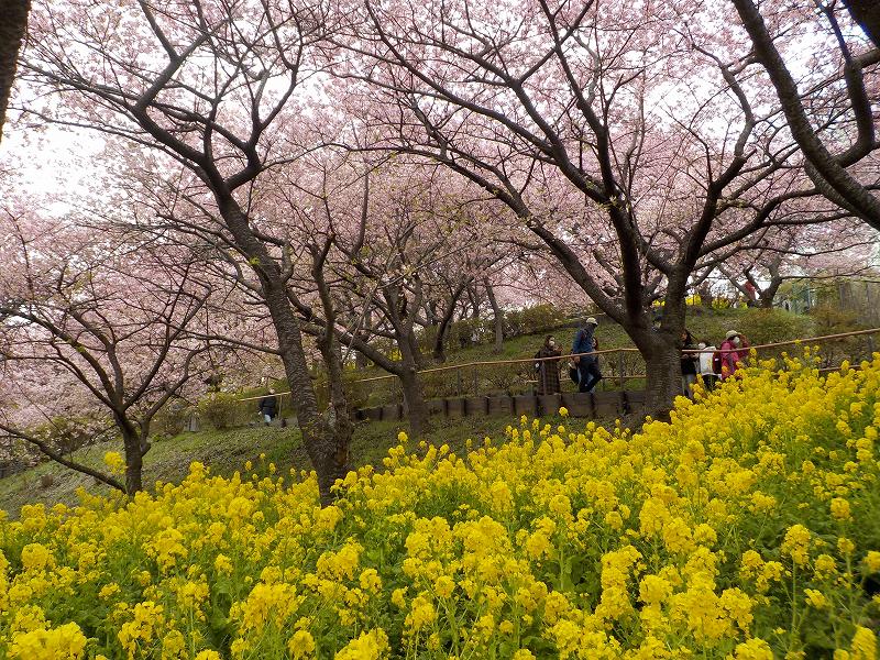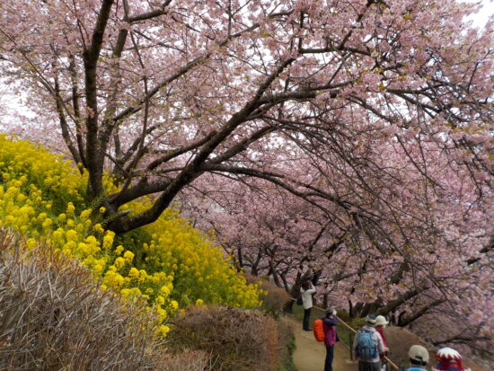 お天気が曇りで食事中にパラパラと小雨も降りましたが、みかん畑でデコポンやみかんを安くゲットして、重くなったザックを背負い、満開の河津桜と菜の花のコラボレーションは圧巻てした。 大倉 記