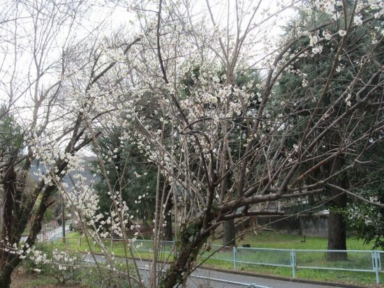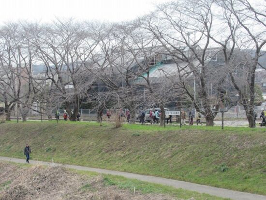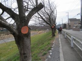 矢川橋を渡った対岸は桜並木が続きます。 人の往来が多くなるためでしょうか? 歩行者側は枝が切られていました。