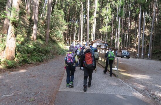 スギ林の中を歩きます