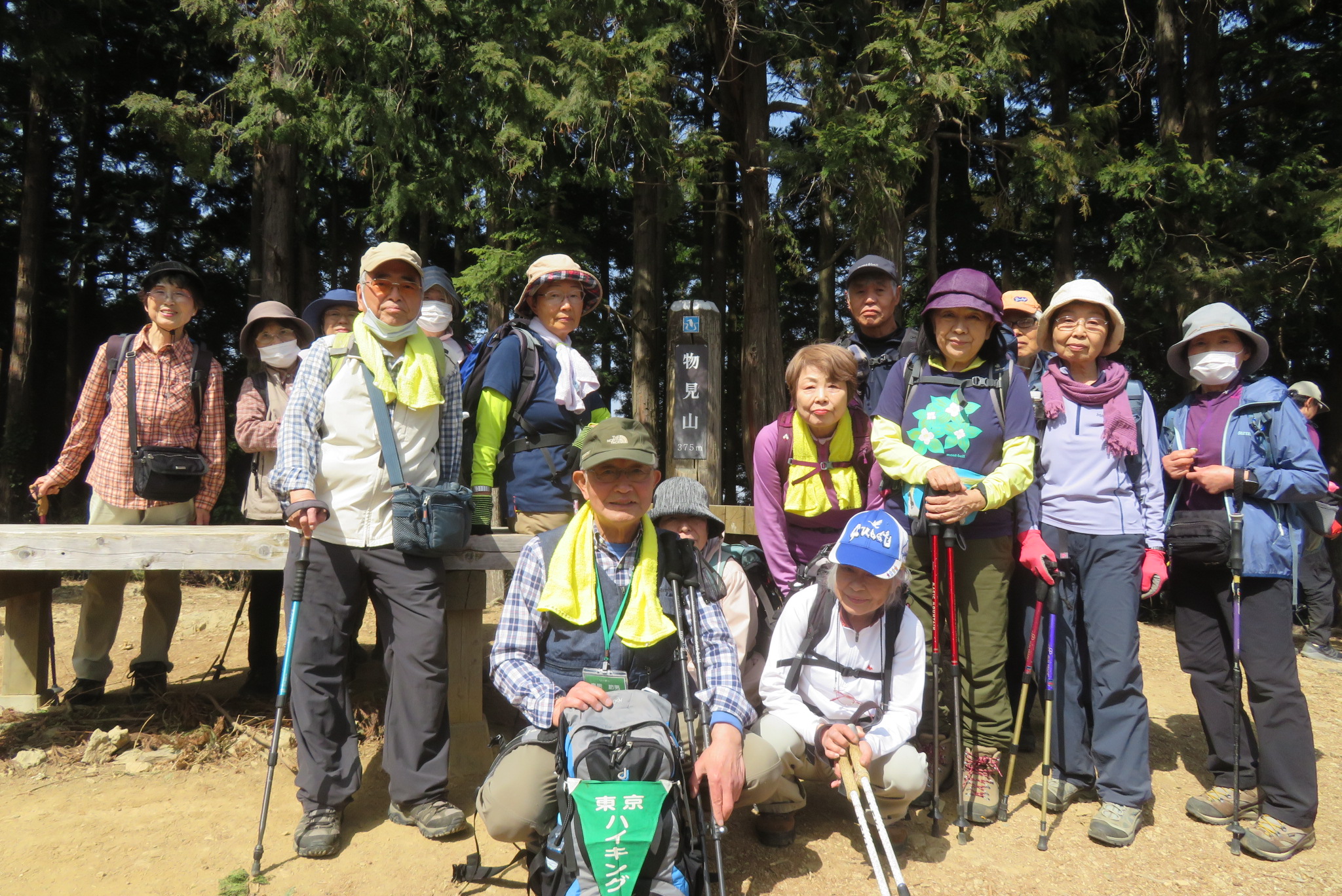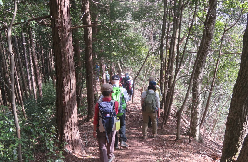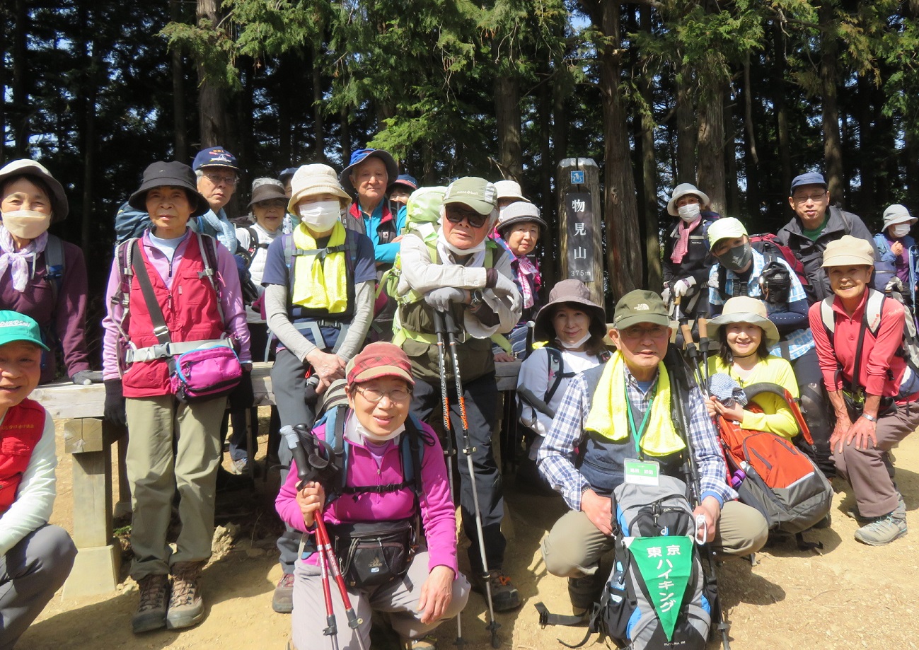 寒くもなく暑くもない最適の天気に恵まれ歩くことができました。 物見山の山頂は大勢のハイカーで賑わっており、昼食の場所確保が大変でした。 下山は黒尾根の荒れた山道を参加者のみなさんの慎重な歩行で事故なく全員無事に下山することができ、ご協力感謝いたしております