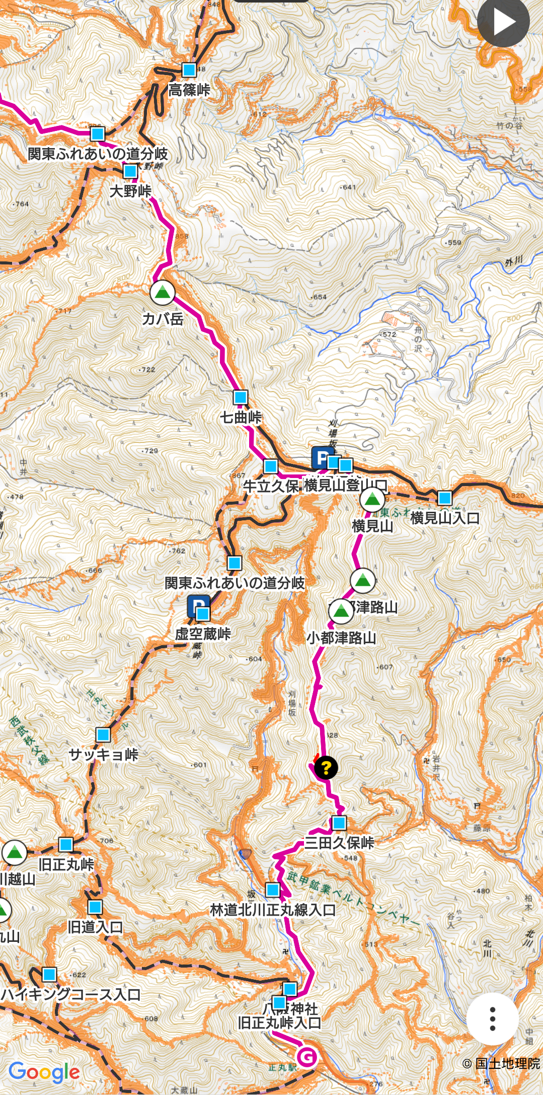 12:10ー12:57刈場坂峠13:09-ツツジ山13:20ー三田久保峠14:30ー15:05正丸駅