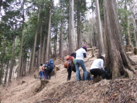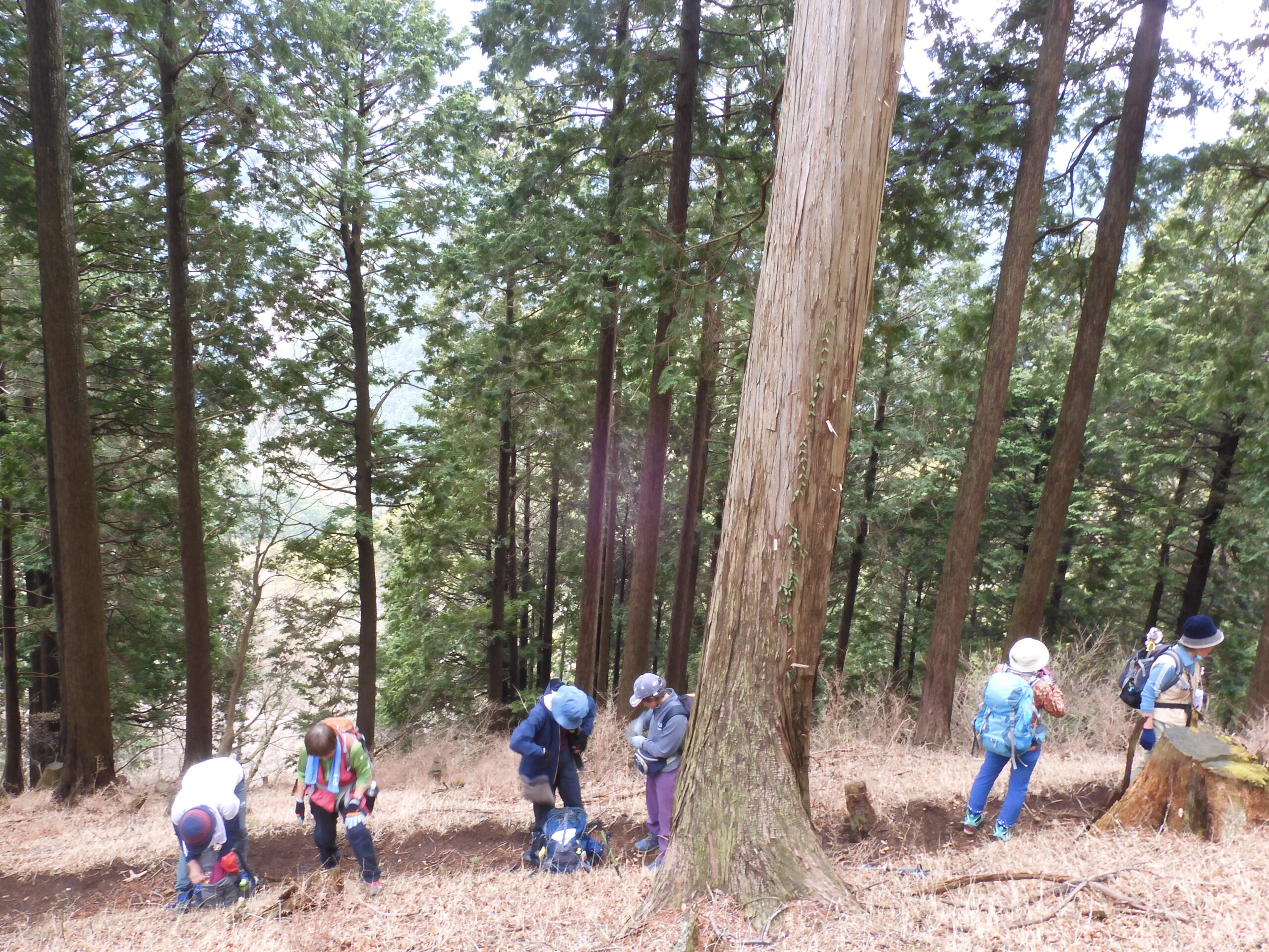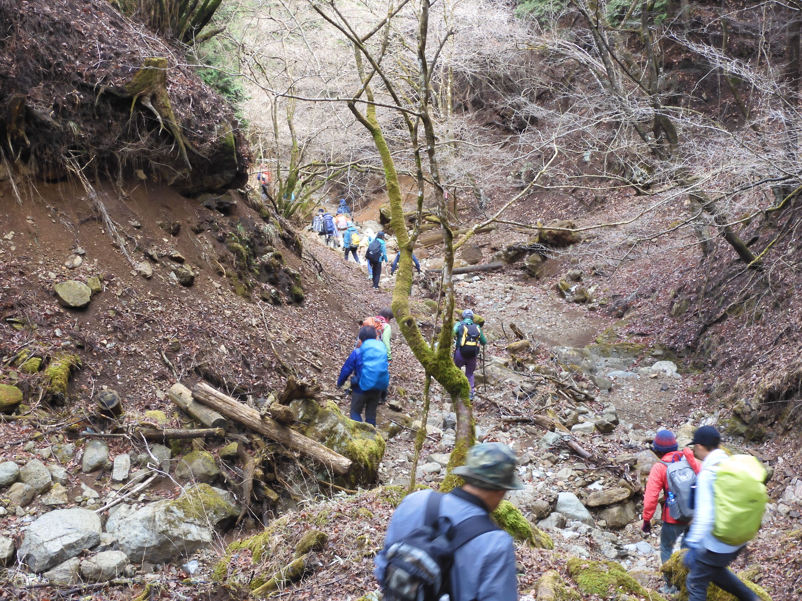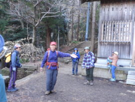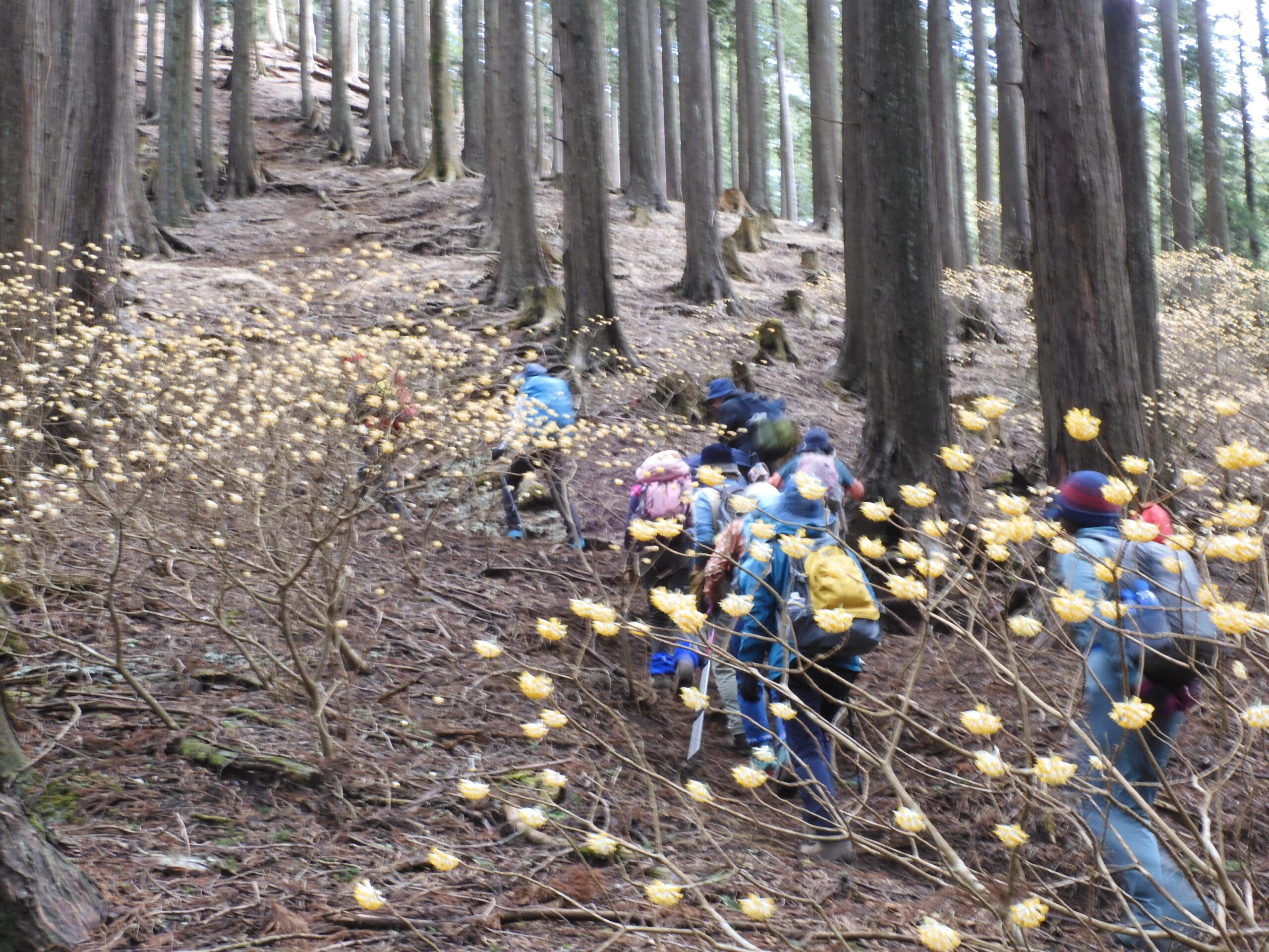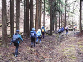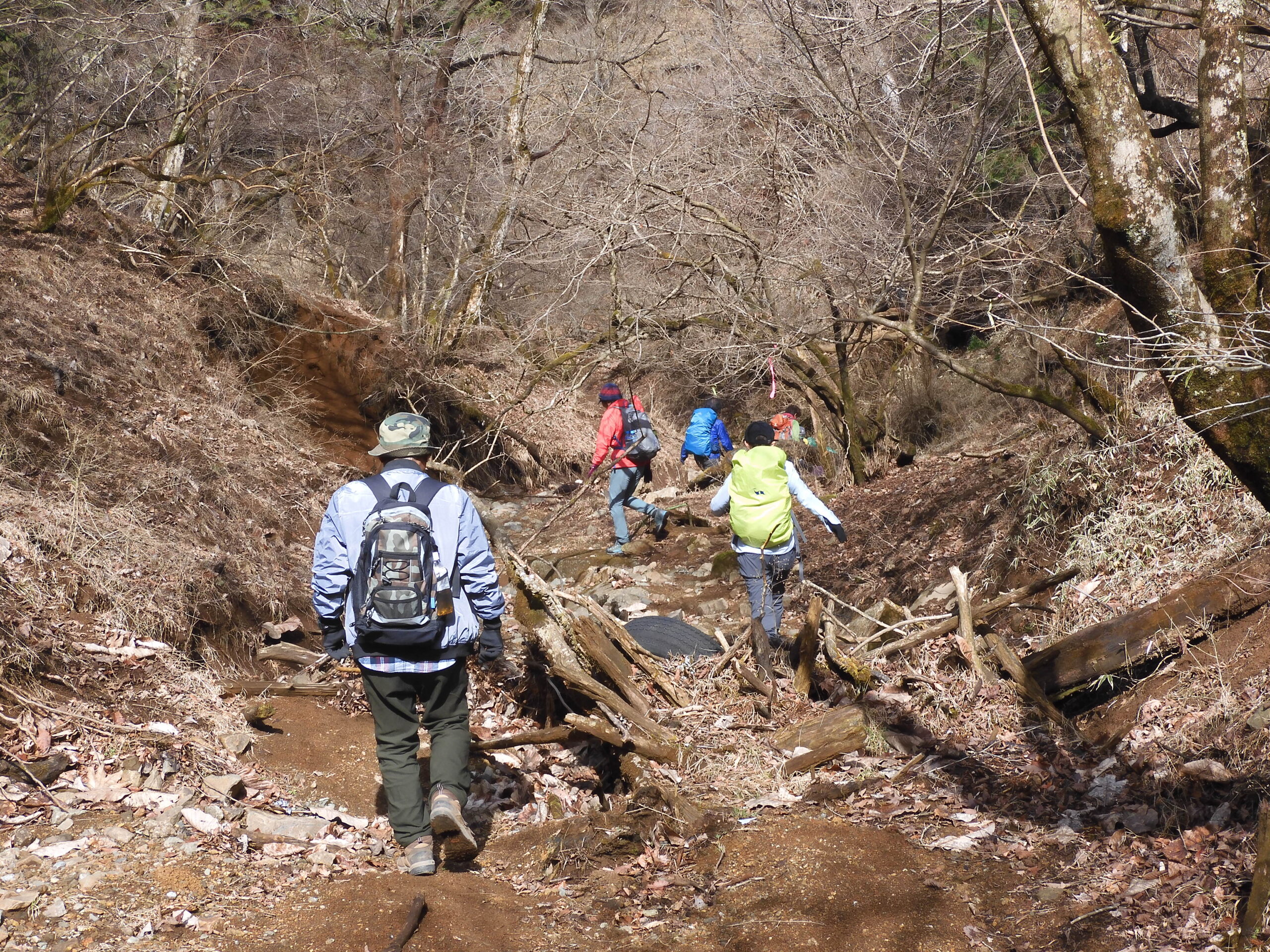 ヤビツ峠バス停 リーダー挨拶 コース説明して出発 コースは先日の雨で足元がスベル❕