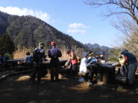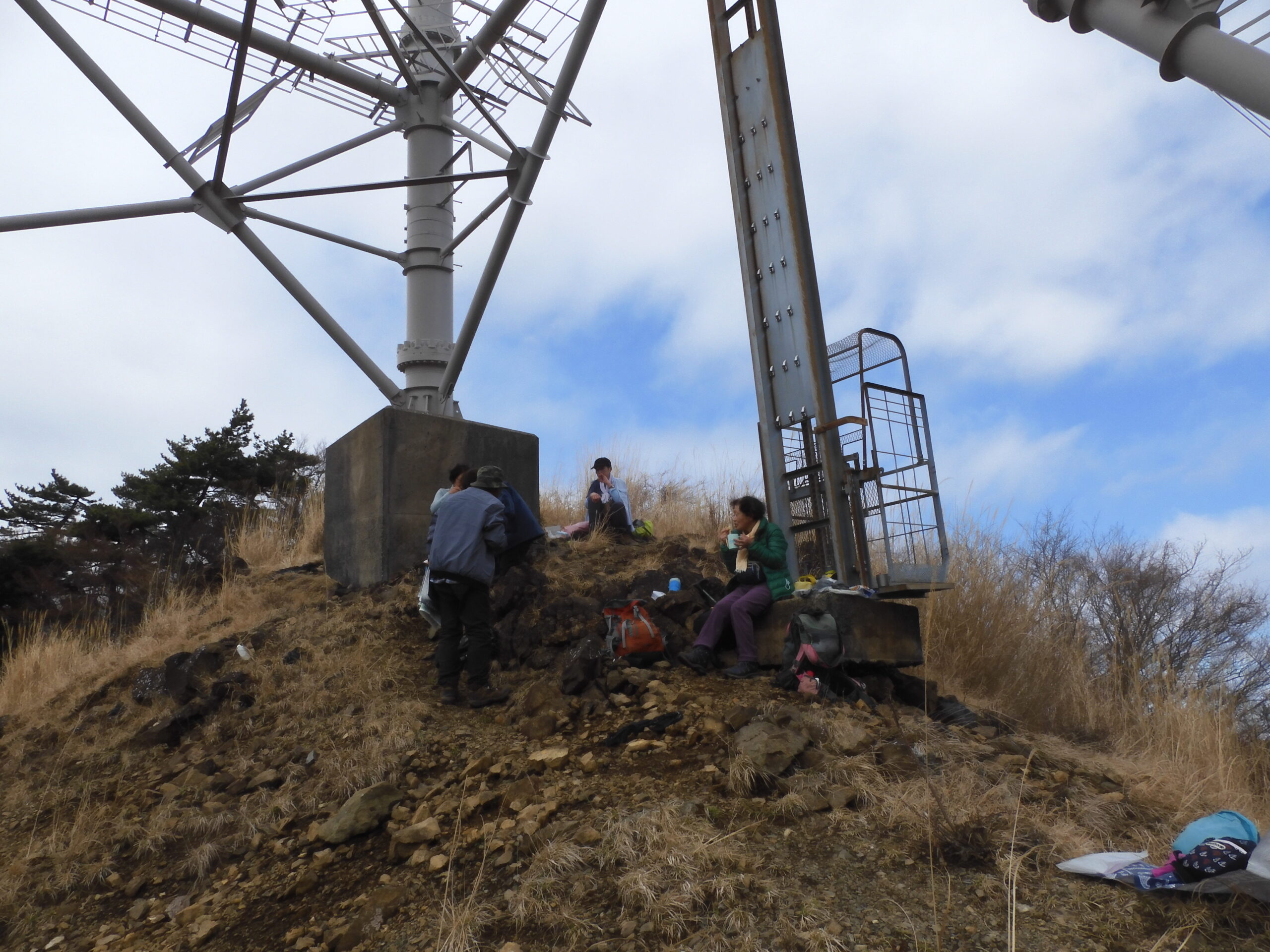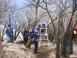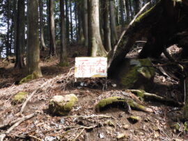 山頂手前の平地で一本入れる 鹿よけの柵を脚立利用で越え山頂へ