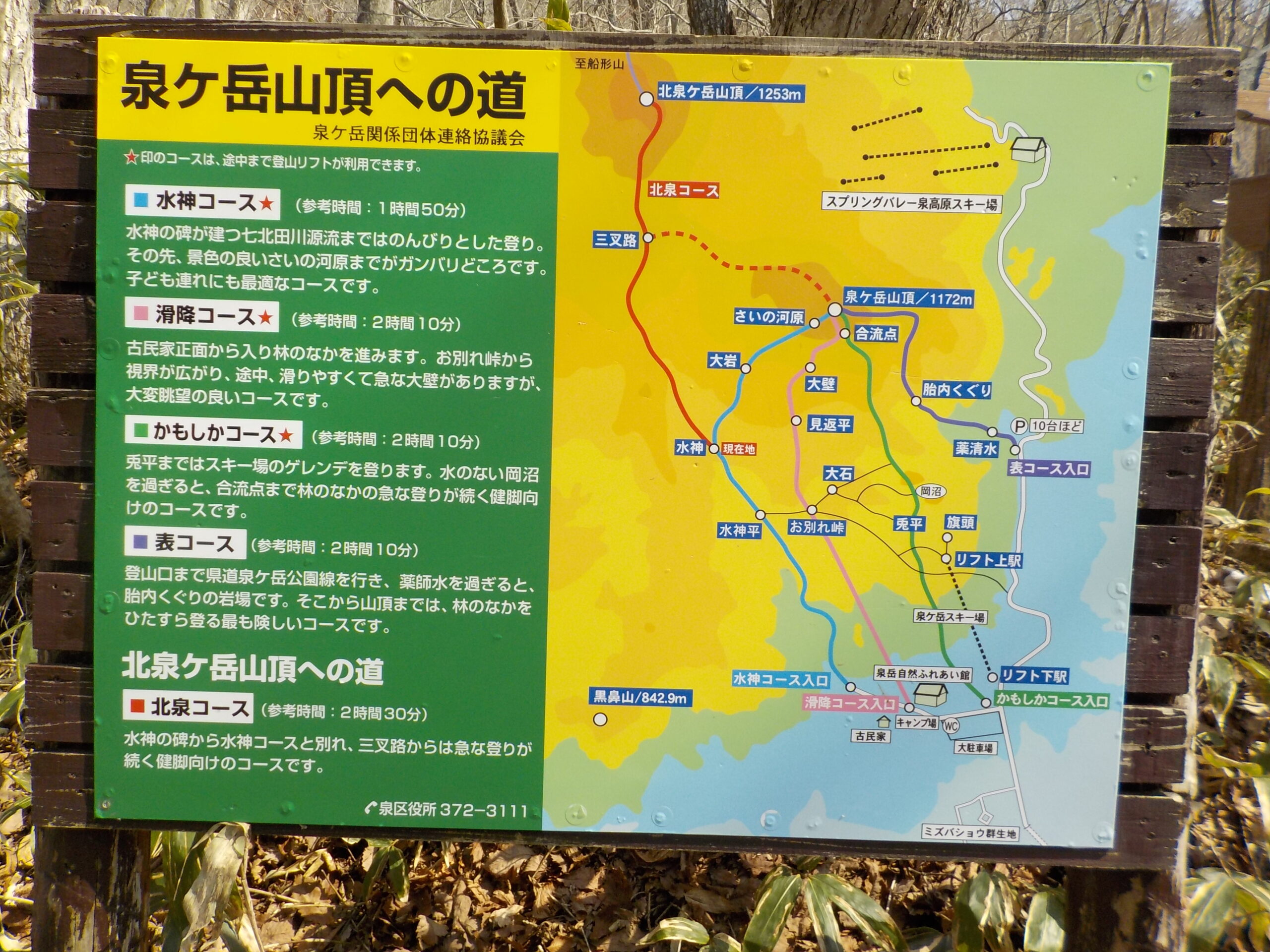 泉が岳ふれあい館下車8時10歩開→水神コース→大岩→賽の河原→泉が岳(昼食)→滑降コース