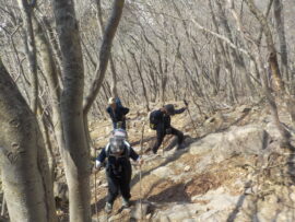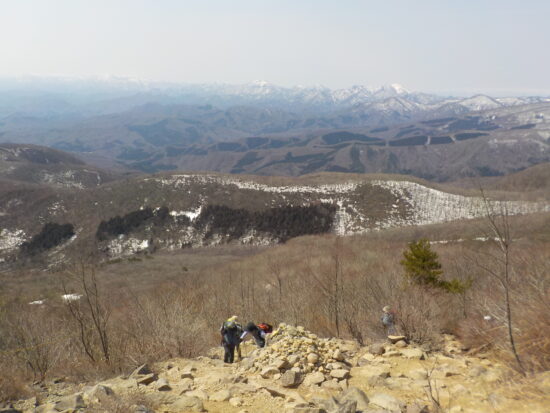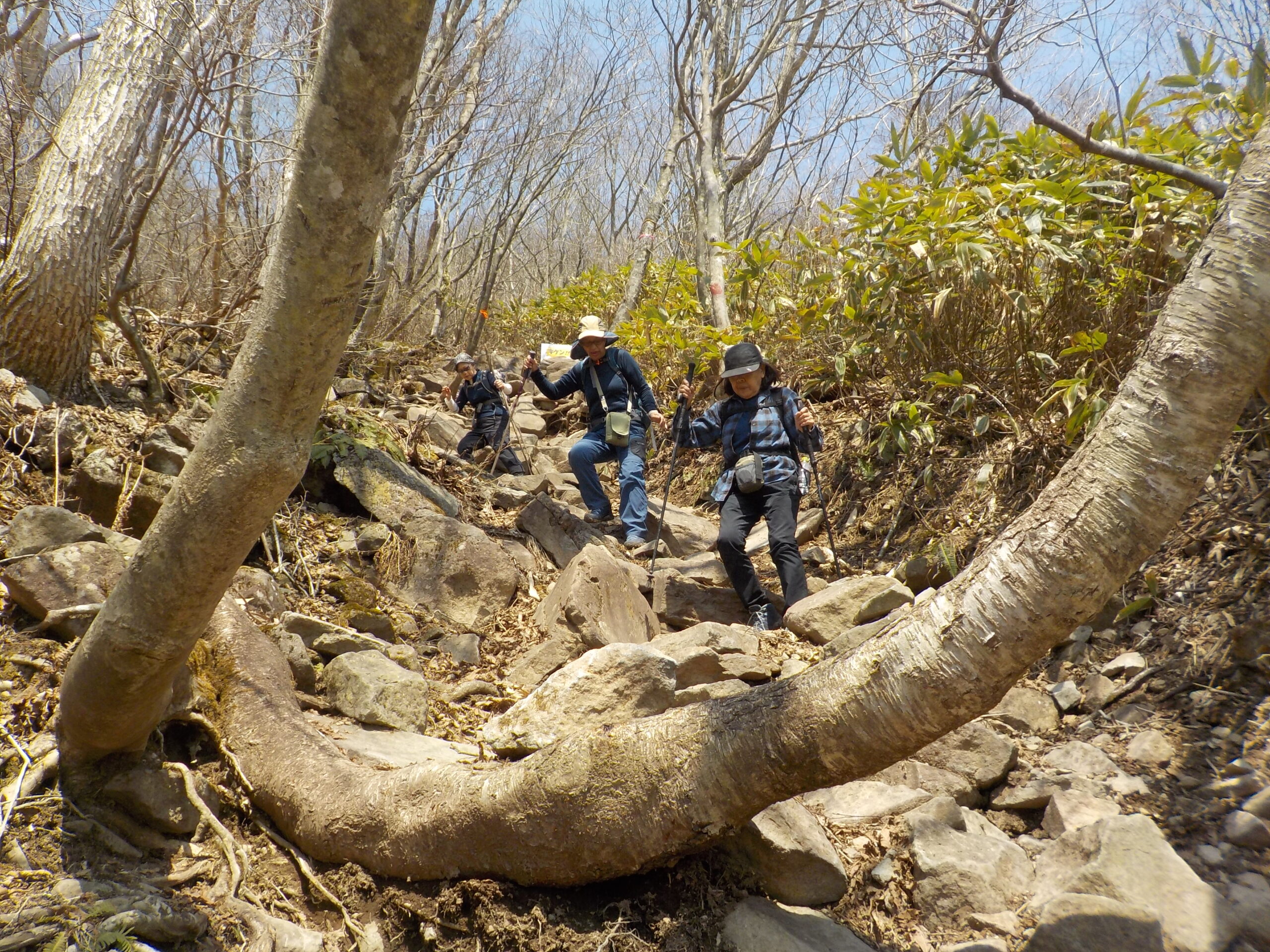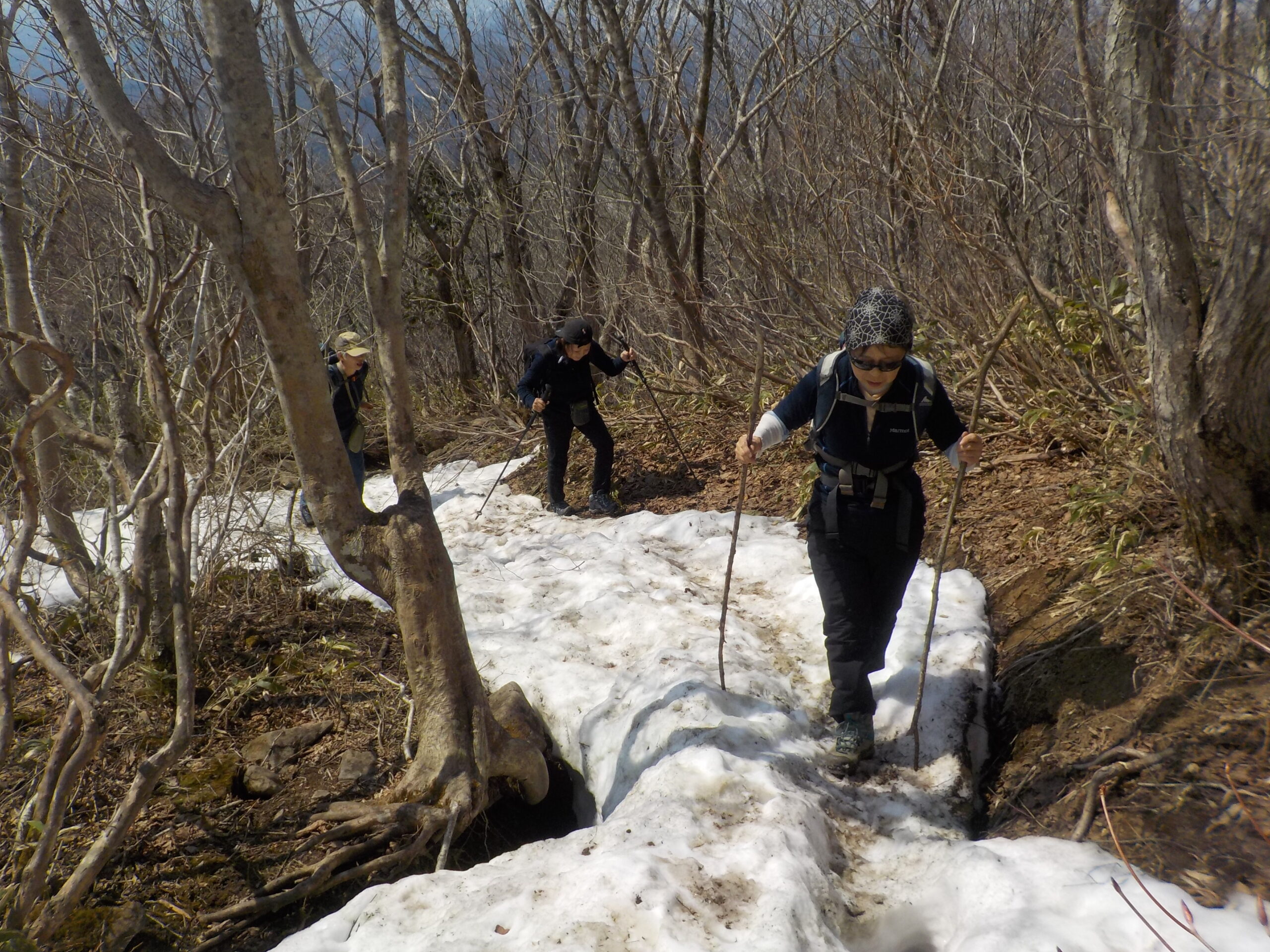 でも登り始めからイチゲやカタクリなど花が多く見られてワクワクしました、残雪がありそれを楽しんだり、岩場で難儀したり、展望も良く変化のあるコースを無事に歩きました。 大倉 記