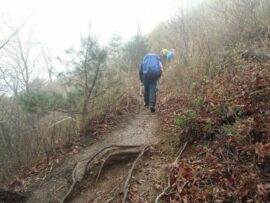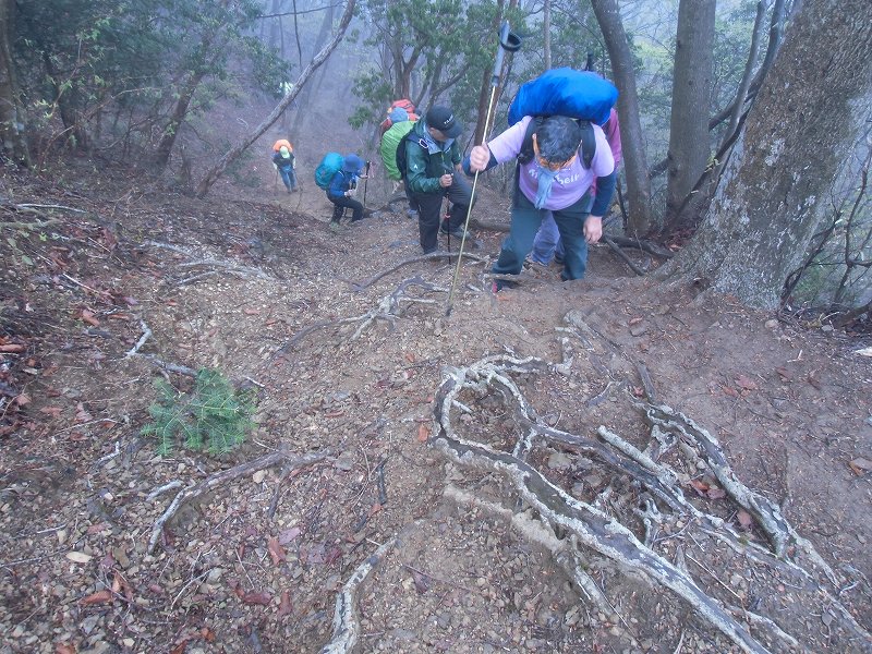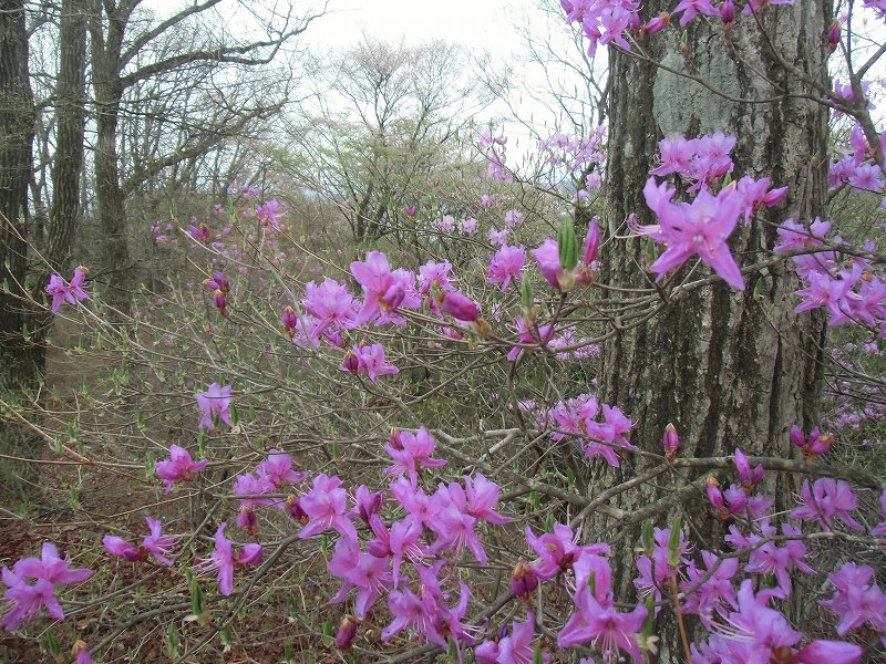お疲れ様でした。朝から雨模様でしたが集合時点でやや回復模様、登山道に入るころには雨もあがり雨に濡れたミツバツツジの花が何とも美しい盛りでした。登山道は二箇所ほど崩れ注意が必要でしたが皆さんとても元気に歩き、楽しめた山行だったと思います。ありがとうございました。