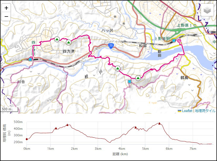 ▼コース : 8:45 四方津駅 – 08:55 コモア・ブリッジ上部広場 – 09:05 四方津御前山登山口 – 09:40y 四方津御前山 – 10:20 上野原西中学校 – 10:55 栃穴御前山登山口 – 11:25 栃穴御前山(昼食) – 12:40 鶴島御前山 – 13:05 御前山登山口 – 13:35 上野原駅