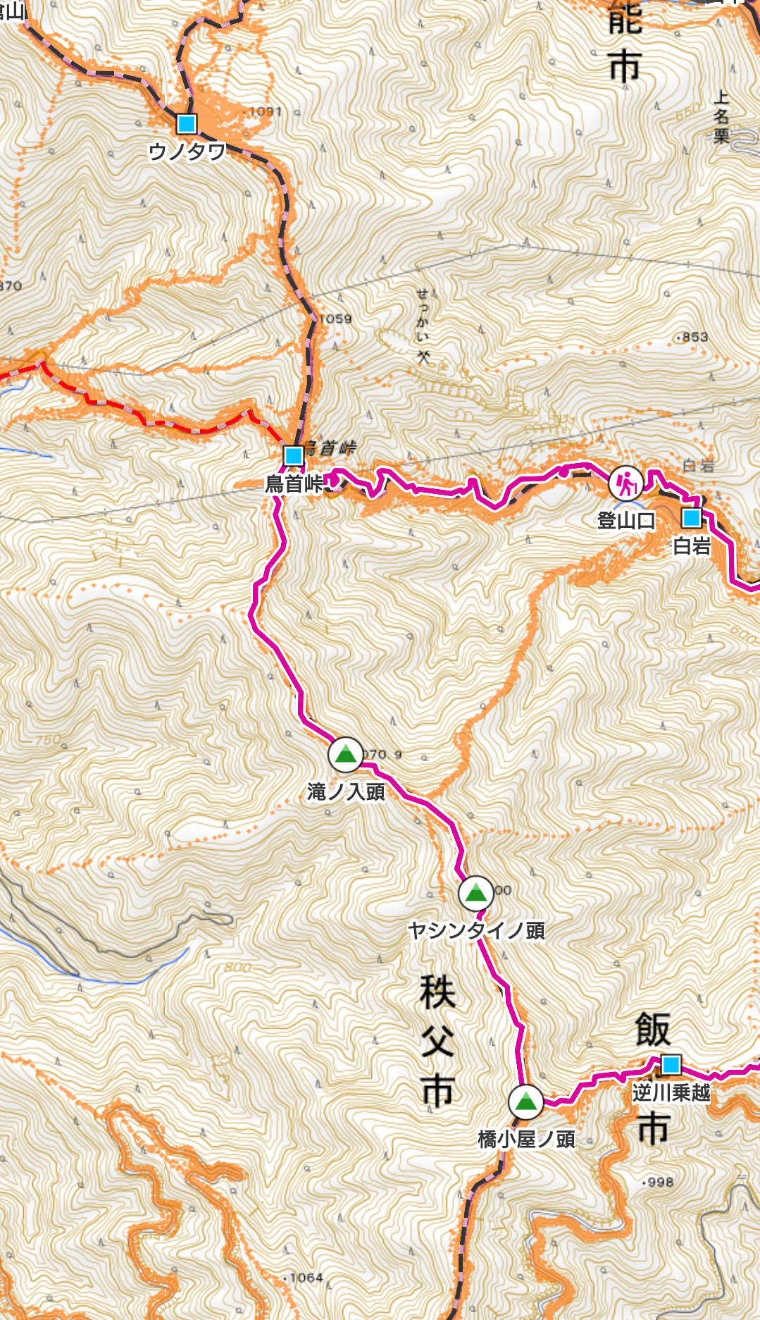 12:56橋小屋ノ頭13:02-ヤシンタイノ頭13:22-しょうじくぼの頭13:30ー滝入ノ頭