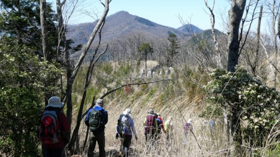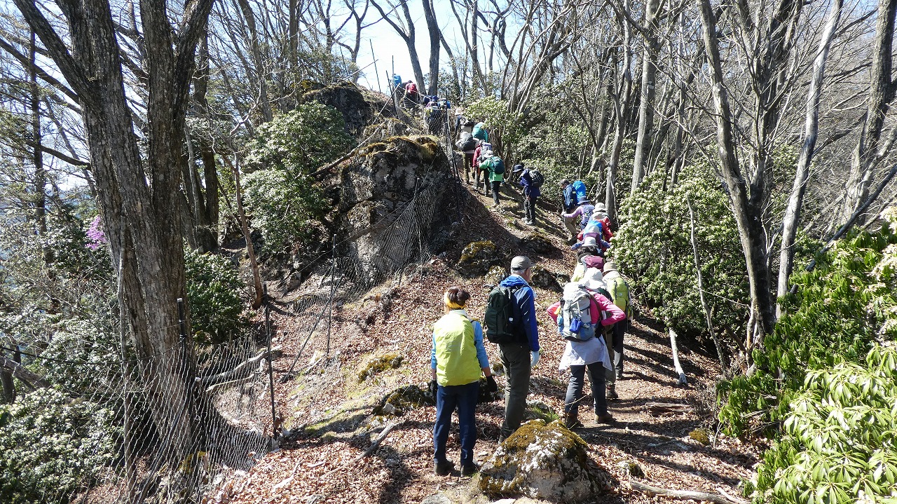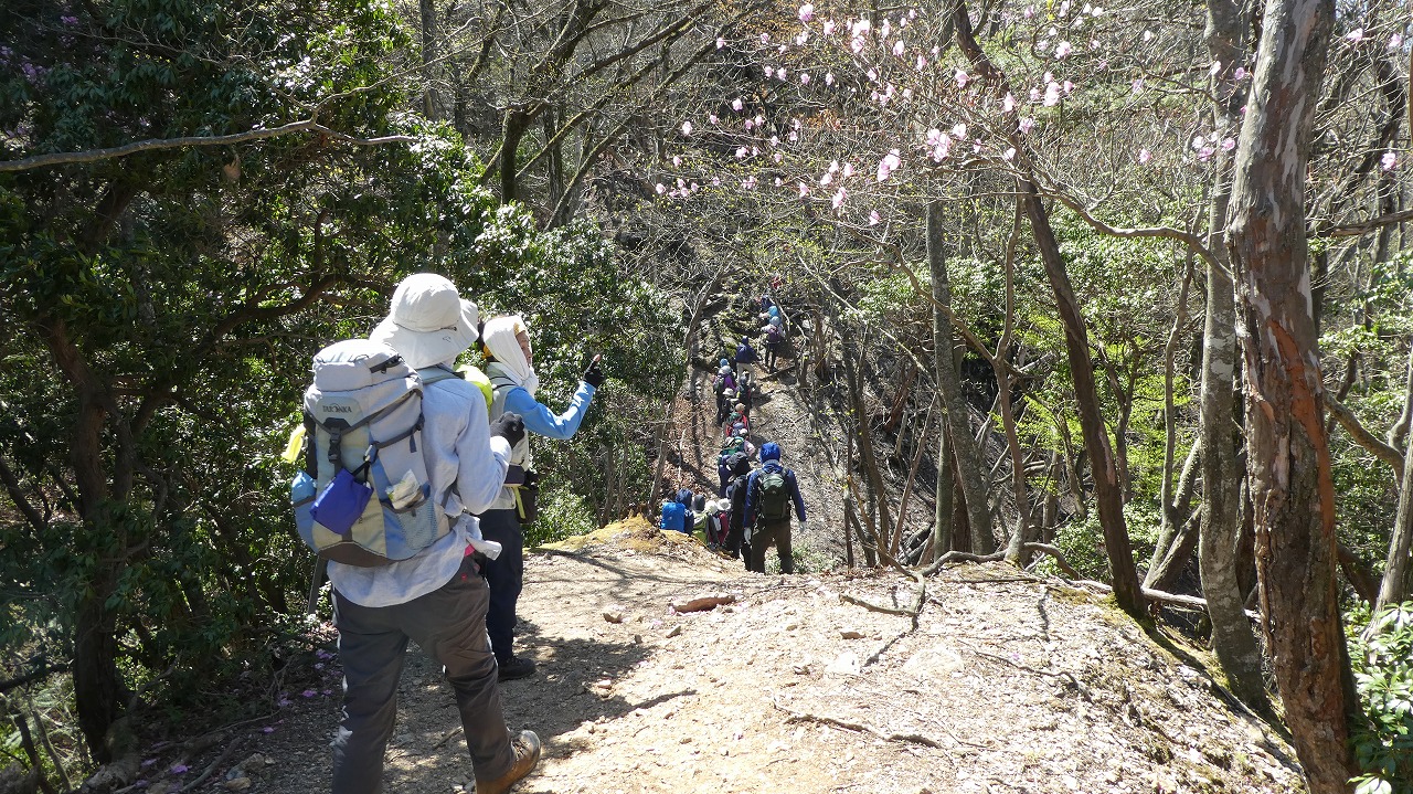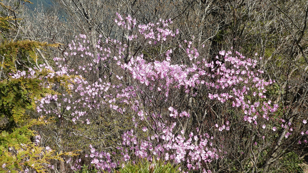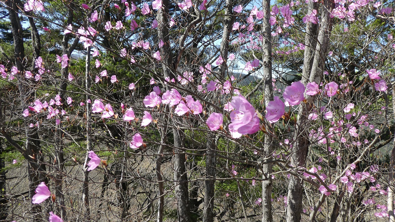 「5回目となった蕨山の思い出の風景にピンクの色が付いた。おまけのアカヤシオとミツバツツジが咲き揃ってお出迎え。冷たい風が吹く登りだったが、賑やかな登山道となり、気持ちが和む。