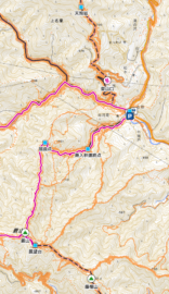 13:49ー鳥首峠14:33-林道15:32ー15:53名郷バス停16:20ー(バス)-15:20