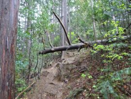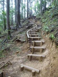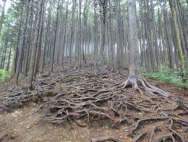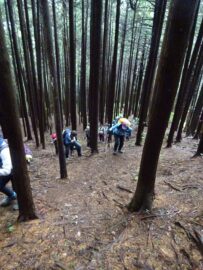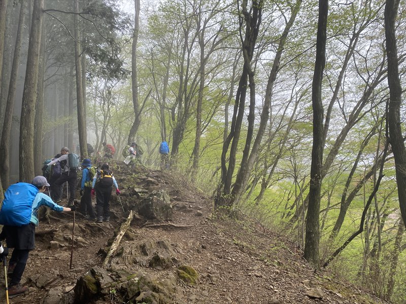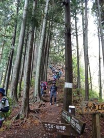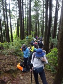 前日の雨の影響で、急坂などが滑りやすくなっていないか?心配しましたが、意外と悪路は少なかったように感じられました。権次入峠までの急登は、木の根のハリ、階段、崩れた箇所ありで困難な登り坂でしたが、皆さん力強く登られました。